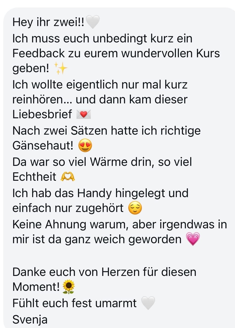 nur kurze, klare Sessions, die tief gehen und echt was bewegen
